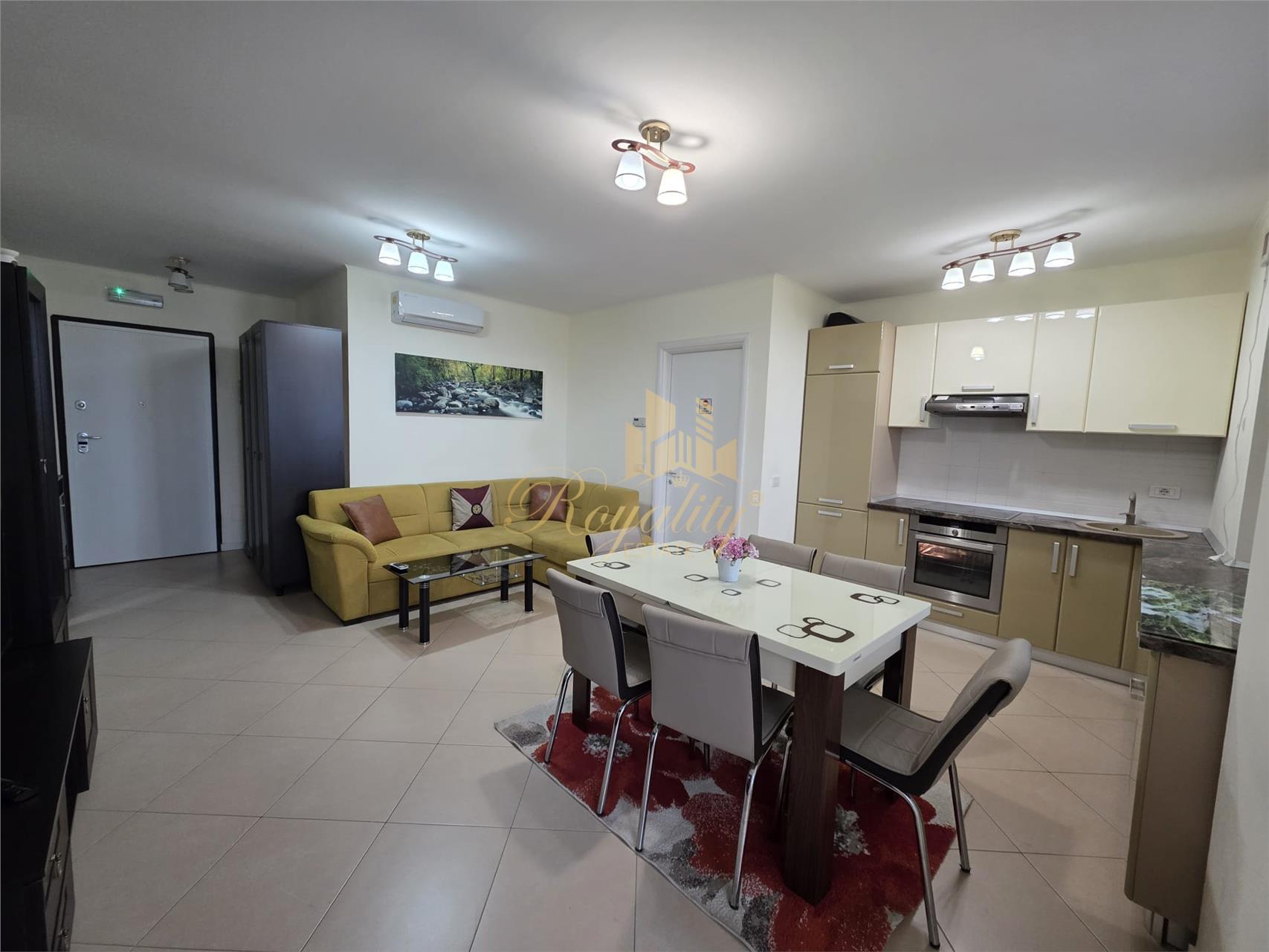 Apartamentul se inchiriaza complet mobilat si utilat, conform pozelor. Dispune de: plita pe inductie, cuptor electric, hota, combina frigider, masina de spalat haine si TV.